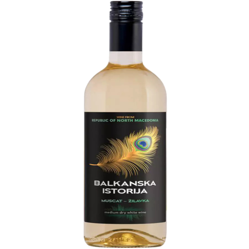 Białe półwytrawne wino Balkanska Istorija to elegancki kupaż delikatnych gron szczepu Muskat - lokalnego.Typowo bałkańskiego szczepu winogron. Wino to cechuje łagodna równowaga słodyczy i świeżości, okraszona nutami dojrzałych owoców cytrusowych, kwiatowych aromatów Muskata i akacji. Na podniebieniu delikatnie mineralne z niezwykle trwałym, owocowym finiszem. Znakomite na każdą okazję.