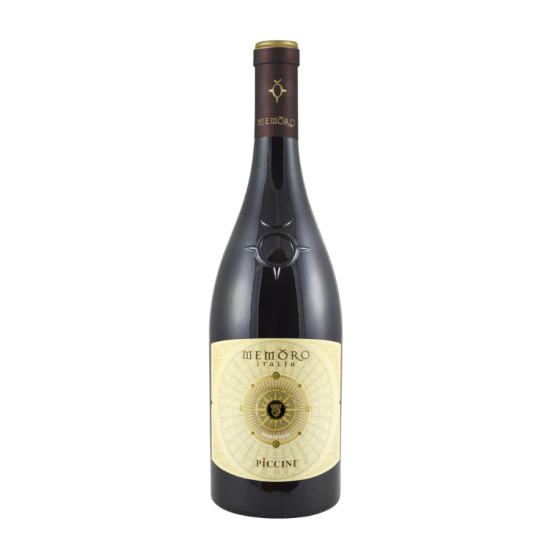 Piccini Memoro Vino Rosso ma kolor głęboko-ciemny rubinowy. Mocne aromaty ciemnych owoców zwłaszcza dojrzałej wiśni z nutą dębu i kawy.