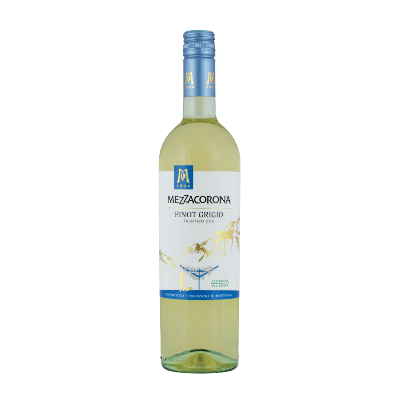 Wino delikatnie złożone o intensywnym zapachu, wytrawne, z przyjemnym posmakiem, lekko gorzkie. Idealne do wędlin, smacznych głównych dań, czerwonej i białej pieczeni. Pinot Grigio to znana na całym świecie odmiana, należąca do najtrudniejszych w uprawie, znalazła się pod opieką członków Mezzacorony, którzy uprawiają winogrona na terenach pagórkowatych. Mezzacorona uprawia tę odmianę na wzgórzach Pressano i Faedo, na północ od Trydentu.