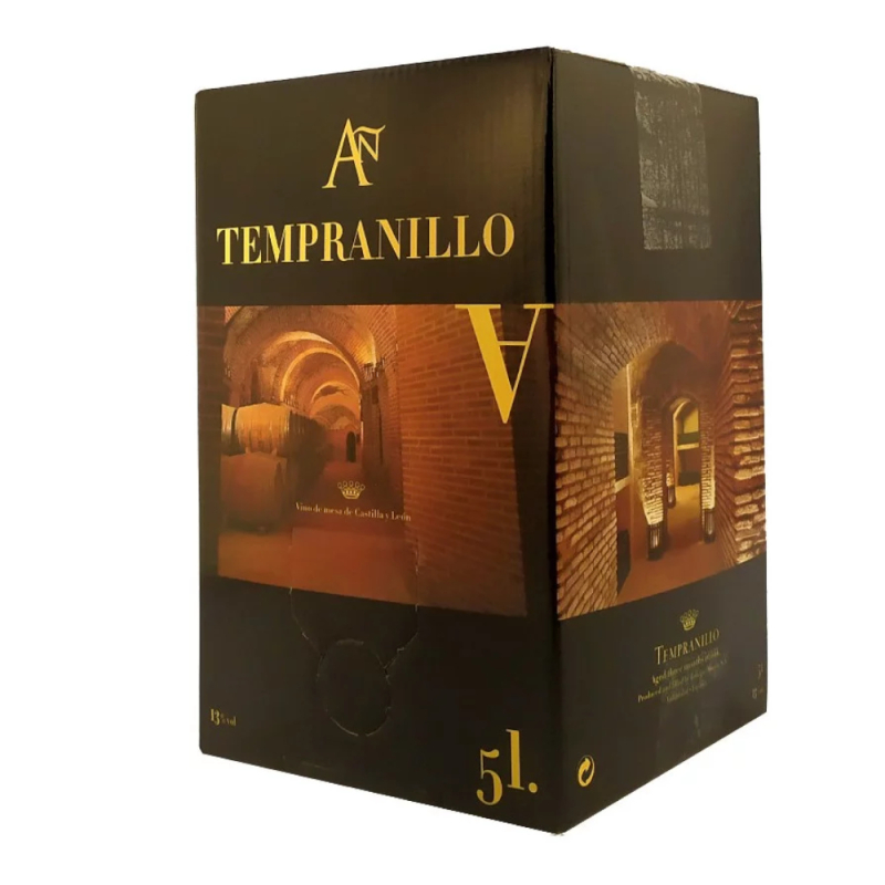 Wino czerwone wytrawne ze szczepu tempranillo, w ekonomicznym 5-litrowym opakowaniu typu bag in box.