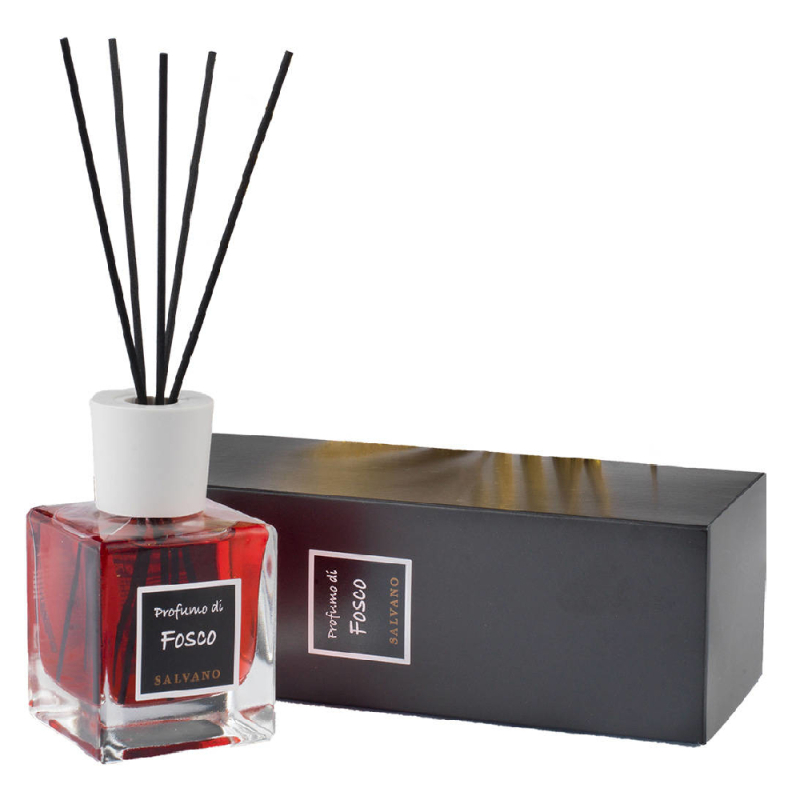 W pudełku firmowym znajdą Państwo patyczki zapachowe „Profumo di Fosco” 200 ml oraz butelkę piemonckiego wina musującego Brut Jhamel Metodo Classico Millesimato.