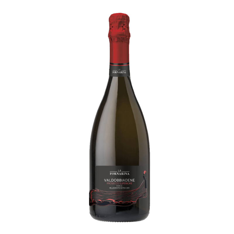 Valdobbiadene Prosecco DOCG Superiore Extra Dry – Wytrawne wino musujące z Włoch. Wytrawne wino musujące z 100% szczepu Glera, pochodząca z apelacji Valdobbiadene posiadającą najwyższą kategorię jakościową Denominazione di Origine Controllata e Garantita (DOCG). Winogrona są zbierane ręcznie i uprawiane na stromych stokach co nadaje im pełności i aromatów.