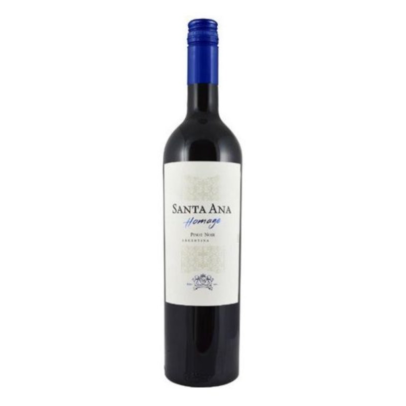 Santa Ana Homage Pinot Noir to czerwone, wytrawne wino argentyńskie, o pięknej czerwonej barwie. Urzeka aromatami ciemnych wiśni, wanilii i ciemnych owoców. W ustach owocowe z nutami wanilii. Produkowane w regionie Mendoza w pobliżu gór Andy, z ręcznie zbieranych i starannie wyselekcjonowanych gron Pinot Noir.