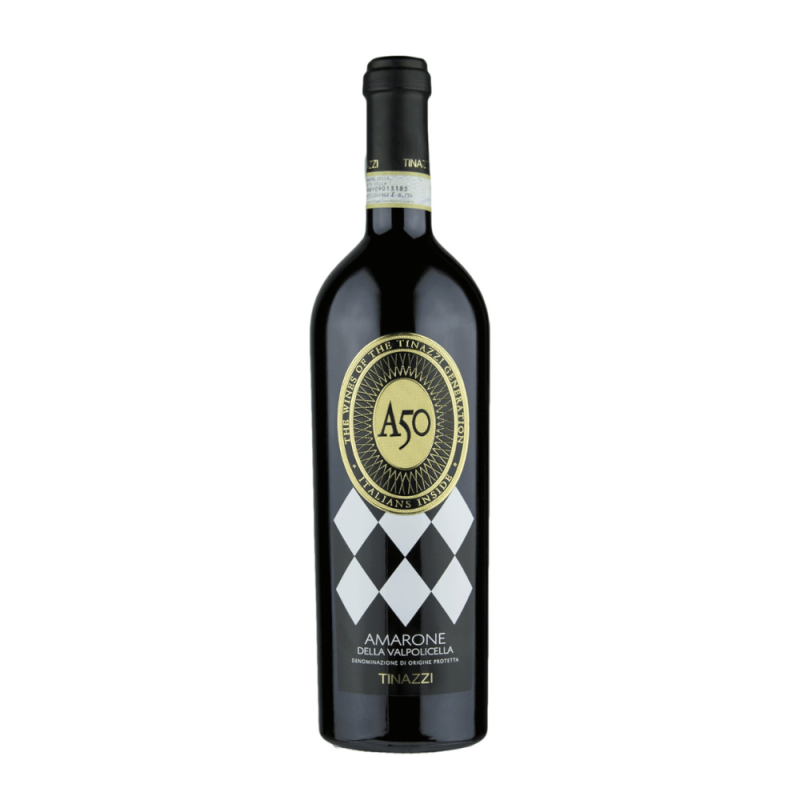 Tinazzi A50 Amarone della Valpolicella Classico Riserva 750ml to wybitne czerwone wino z regionu Veneto we Włoszech, z apelacji Amarone della Valpolicella Classico DOCG, produkowane z podsuszanych winogron szczepów Corvina, Corvinone i Rondinella. Charakteryzuje się głęboką rubinową barwą z granatowymi refleksami oraz intensywnym aromatem dojrzałych śliwek, wiśni i jagód, wzbogaconym nutami czekolady, przypraw, tytoniu i wanilii. W smaku jest pełne, bogate i aksamitne, z idealnie zbalansowaną kwasowością, miękkimi taninami i długim, harmonijnym finiszem. Doskonałe do dań z dziczyzny, pieczeni, gulaszy i dojrzewających serów, idealne na wyjątkowe okazje.