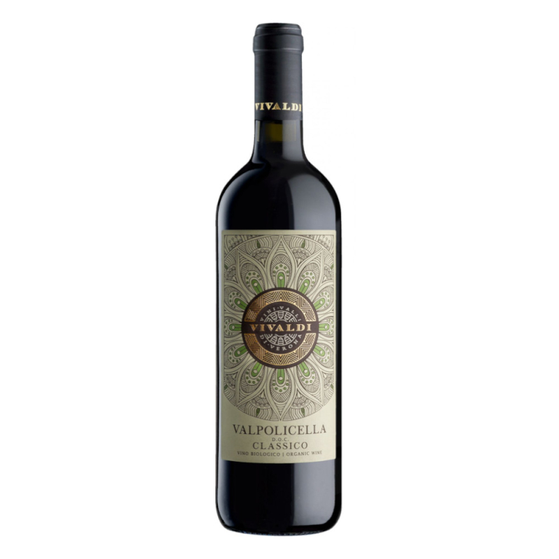 Vivaldi Valpolicella Classico Biologico to Włoskie, czerwone, wytrawne wino z regionu Veneto. Jest kupażem trzech szczepów: Corvina, Rondinella i Corvinone. To wino pochodzi z ekologicznych winnic położonych w najwyższych strefach Valpolicella. Fermentowane i starzone w stali nierdzewnej. Wino o pięknym, intensywnym rubinowym kolorze. W smaku wyczuwalne bogate aromaty czerwonych owoców, minerałów i korzennych przypraw. Świetne do makaronów, czerwonych mięs i serów.