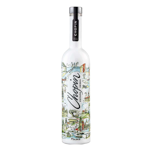 Limitowana, unikatowa edycja polskiej wódki ziemniaczanej Chopin Potato Polish Cities w pojemności 1 litra. Piękny design butelki przedstawia najważniejsze punkty i krajobraz Polski.