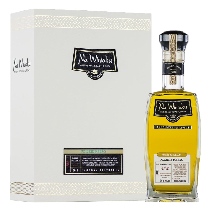 Wysoka jakość połączenia dojrzałych jabłek z destylatami. Alkohol rocznikowy, produkowany tylko i wyłącznie w Polsce.