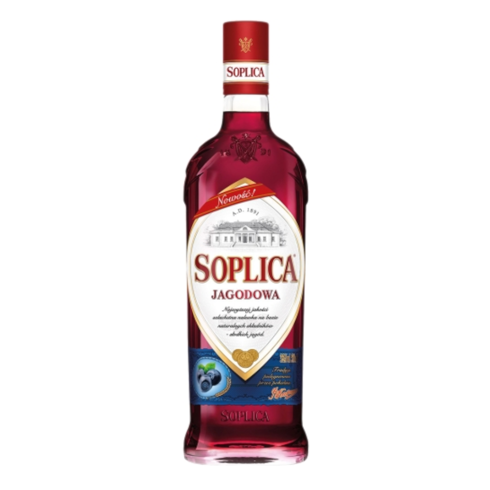 Soplica Jagodowa to polska wódka smakowa o intensywnym smaku leśnych jagód. Charakteryzuje się głębokim, rubinowym kolorem oraz naturalnym aromatem świeżych jagód. Jest słodka, z delikatnie owocowym finiszem, co sprawia, że jest idealna do picia solo, na lodzie lub jako składnik koktajli.