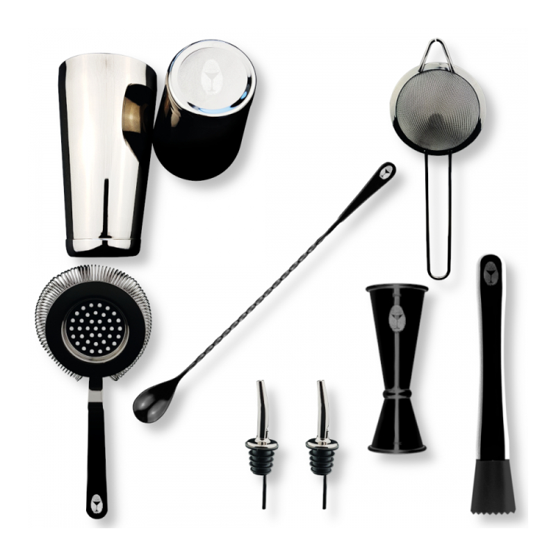 Zawiera wszystko czego potrzebujesz do przygotowania koktajli najpopularniejszymi technikami miksologicznymi takimi jak: