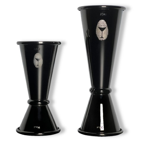 Dwie miarki barmańskie o różnych wskazaniach objętości pozwala precyzyjnie odmierzyć składniki koktajlowe. Posiadają spaw przy zwężeniu między częściami.