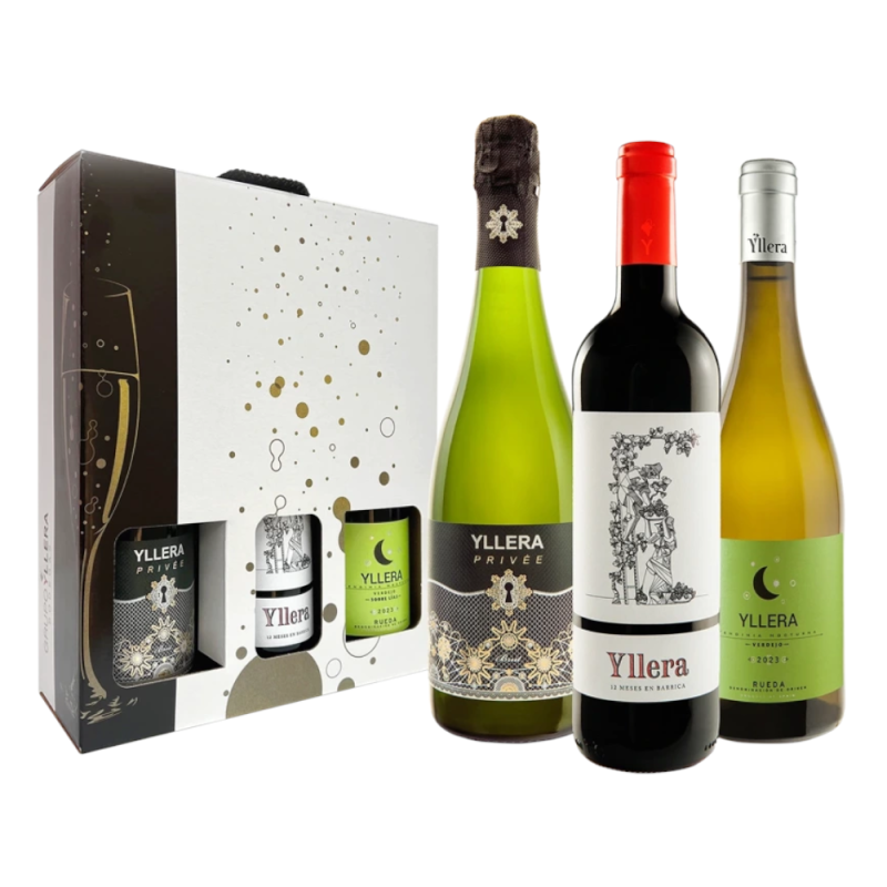 Zapakowany w eleganckie prezentowe pudełko zestaw trzech win z winiarni Yllera. Składają się nań białe wino musujące z odmian chardonnay i verdejo powstałe przy zastosowaniu metody tradycyjnej, białe wytrawne wino spokojne ze szczepu verdejo z apelacji Rueda i czerwone wytrawne wino regionalne VdT Castilla y León, 12 miesięcy dojrzewane w beczkach z dębu amerykańskiego i francuskiego.